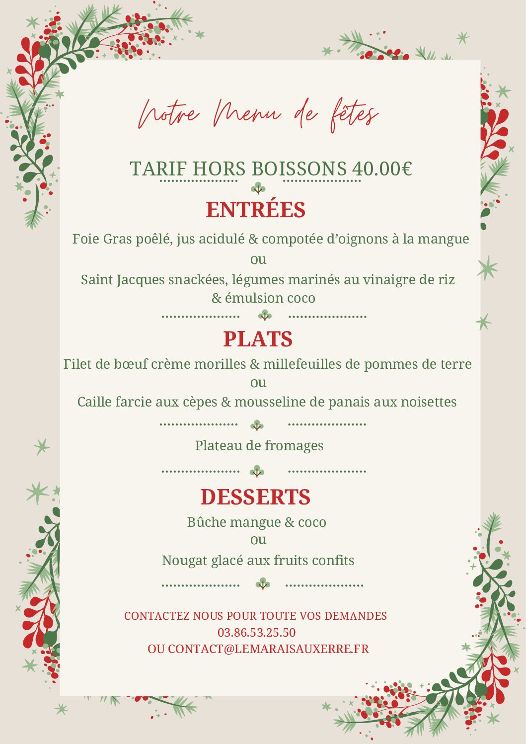 Jusqu'au 31/01/24, nous vous proposons notre menu de fêtes (15 personnes minimum)